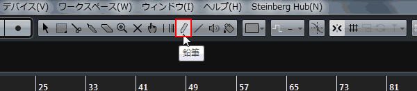 打ち込みをするに当たって、まずはキーエディターの左上のツールバーの鉛筆を選びましょう。